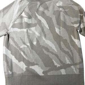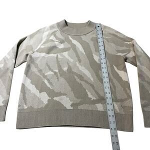 Athleta Short Sweater Thermolite Tan Camo Jacquard Crew Neck Merino Wool Size XS