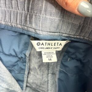 Excellent used Condition Women’s Athleta Cabo Blue Chambray Linen 4” Shorts in Size 14