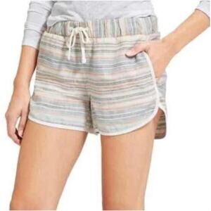 Athleta Shorts Womens 4 Cream Multi Striped Jacquard Sandbar Linen Beach Casual