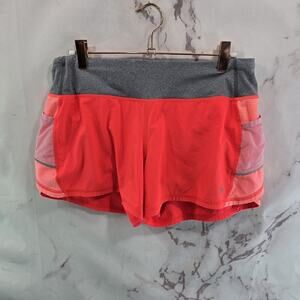 Athleta Shorts Womens Small Orange Gray Running Lined Mid Rise High Vis Neon