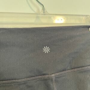 Black Side Zip leggings/tights from Athleta. The zippers are fully functional all the way to the top, but they only open 9 inches from the ankle. See photos for more detail! Women's M.