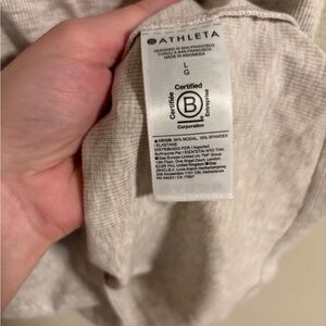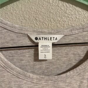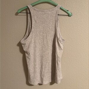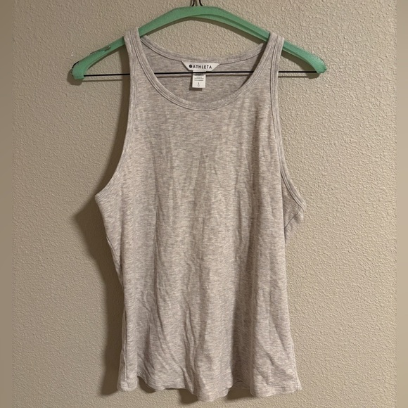 Chic and versatile Athleta tank. Ribbed fabric, high scoop neck style in good condition with no damage. Heathered tan/grey color.