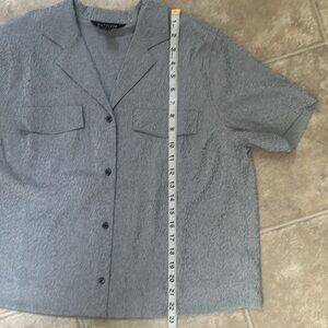 Athleta Silver/Grey Echo Short Sleeve Button Front Shirt Size Medium