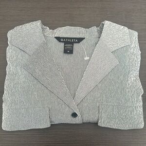 Athleta Silver/Grey Echo Short Sleeve Button Front Shirt Size Medium NWOT
