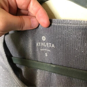 tags: Athleta long sleeve top, silver activewear top, women's athletic wear, size small workout top, Athleta performance shirt, stylish gym wear, lightweight exercise top, Athleta layering piece, trendy activewear 2025, Athleta Silvery collection