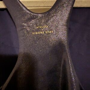 Athleta Simone Biles Collab NEW WITH TAGS metallic navy blue crop tank top size medium.