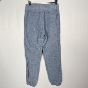 Athleta Size 0 Blue Cabo Linen Jogger Pants Chambray Drawcord Waist Zip Pockets