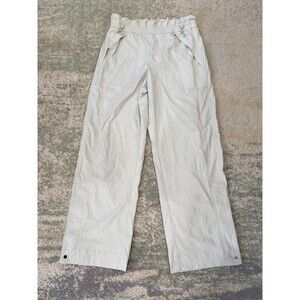 Good condition, pre-owned. The color is greenish/gray/cream. It's a hard color to pinpoint. Athletic, Wind pants, windbreaker, waist, elastic, W0192
