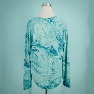 Athleta Size Large L Blue Mindset Marble Tie Dye Crew Neck Long Sleeve Modal Spandex Blend Knit Pullover Sweatshirt Top- style 400458