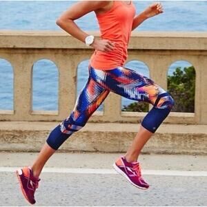 Athleta Size Large L Lava Sonar Print High Waist Pull On Capri Cropped Active Athletic Leggings - Style 721717-00