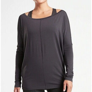 Athleta Size M Essence Flow Top Dolman Long Sleeve Jersey Knit Gray