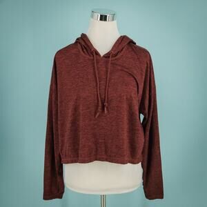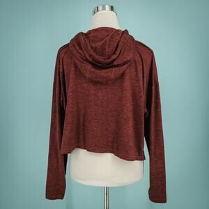 Athleta Size Medium M Heather Burgundy Dark Red Uptempo Short Crop Cropped Hoodie Hooded Long Sleeve Active Athletic Casual Polyester Spandex Blend Knit Top Shirt- Style 530134-05