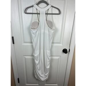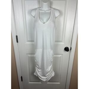 Athleta Size Medium White Ruched Tee Racerback Athleisure Dress Midi