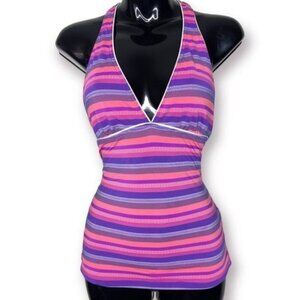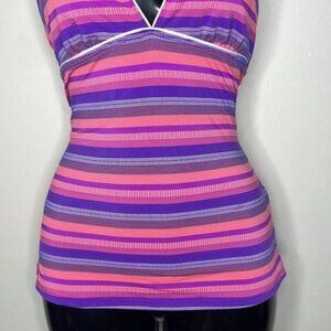 Athleta Size S Purple Pink Stripe Beach Vacation Tulum T Back Swim Tankini Top $70