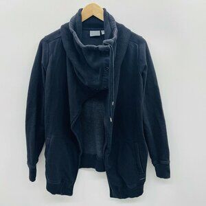 It's all about the neckline in this super-soft, French terry sweatshirt that can be worn with the collar open and snapped flat or wrapped up for added neck warmth.