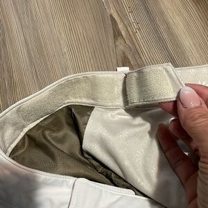 Athleta Ski Pants White Gray Zippered pockets Women’s L Adjustable Snowboarding
