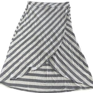 Athleta Skirt Womens Large Grey White Seeing Stripes Tulip Hem Midi