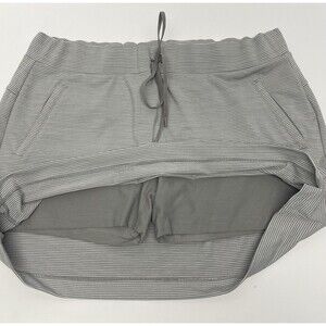 Athleta Skort Gray White Striped Pockets Drawstring Athleisure Women’s Size XL