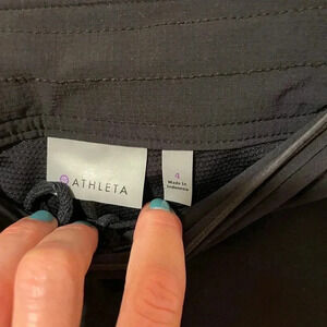 Good pre worn, pre loved condition! Athleta skort, women’s size 4. Ripstop material with zipper detail on sides and back pockets, airy shorts underneath (no pockets on the shorts). All items from a dog friendly, NS home and ship next biz day.