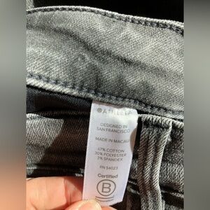 In awesome preowned condition. No noticeable flaws. I LOVE Athleta Jeans!! So flexible and comfortable while still feeling quality. Perfect for getting a drink after a hike with a girlfriend or pulling on after yoga. From what I can see the brand isn't currently making jeans anymore, get them here while you can!!