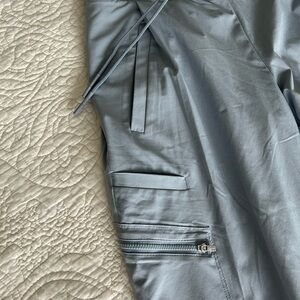 Sky blue pants with a sleek design. Perfect for travel and everyday wear.