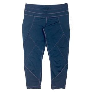 Athleta Iron Blue Mesh Sonar Capri Crop Leggings. Women's size xsmall. 87% polyester 13% lycra spandex.