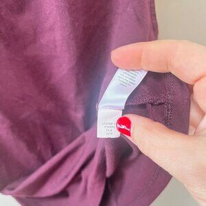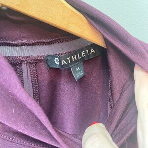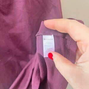 This burgundy tank top, crafted by Athleta, offers a sleek sleeveless design with a stylish high-neck cut. Its lightweight composition ensures comfort for workouts or casual wear.