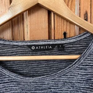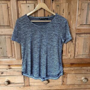 Athleta Small Scoop Neck T-Shirt Short Sleeve Striped Black White Gray