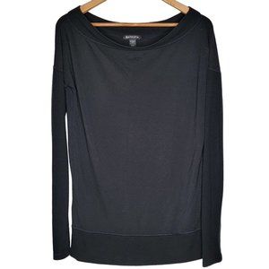 Athleta Small / Tall Solid Black Boat Neck Women's Long Sleeve Pullover Top