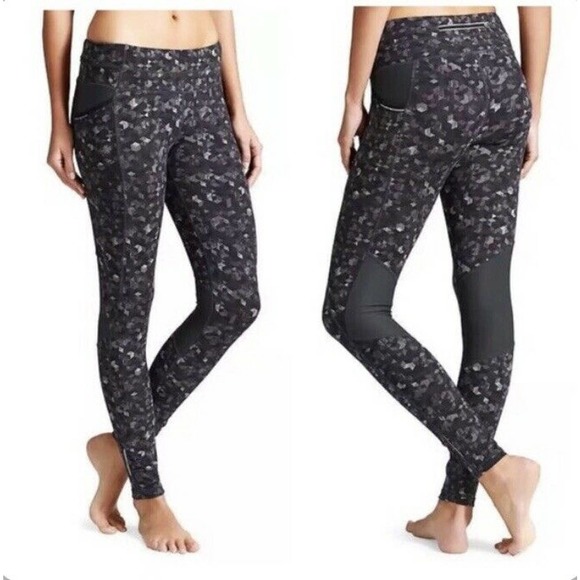 Athleta Small Triangular Be Free Tights Leggings Pockets Reflective. Condition is "Pre-owned".