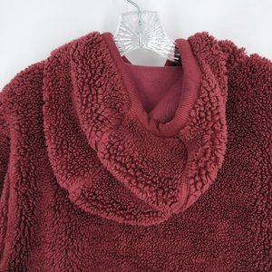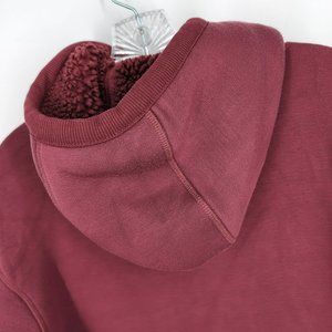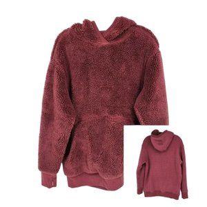 Athleta Solstice Hoodie Small Maple Red Reversible Sherpa Sweatshirt Thumb Holes