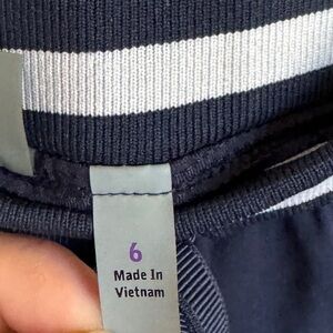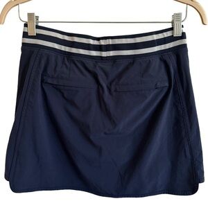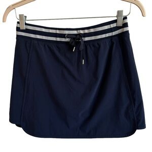 Super cute navy skort from Athleta. Built in shorts with white stripes at the waistband. Size 6 and in great preowned condition; no visible flaws.