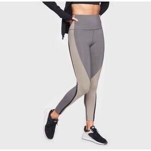 Athleta Spar Color Block 7/8 Tight Women's Size S High Rise Gray Silver Bells