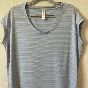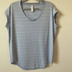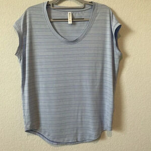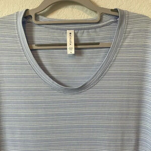 Athleta Speedlight Seamless Top Womens Small Light Blue Stripped T-Shirt