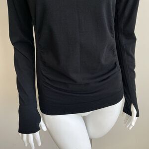 Athleta Speedlight Seamless Wool Blend Top Black Ruched Size Medium Baselayer