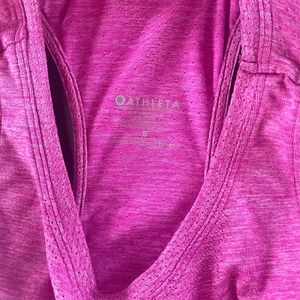 Athleta Speedlight Tank Size S Pink Nylon Seamless Sweat Wicking Logo. Ruched detail. 100% nylon. Approx 25" long. Chest is approx 17" across laying flat. EUC.