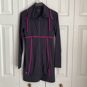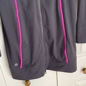 Athleta Spinnaker Long Sun Jacket Womens Gray Asphalt Hot Pink Zip Size XXS