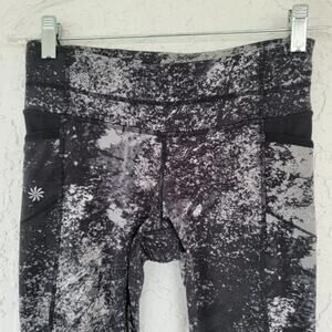 Athleta Splatter Be Free Knicker Cropped Leggings Black White Women Size XSP Mid Rise