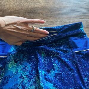 Athleta Splatter Be Free Knicker Legging Small Blue Green Workout