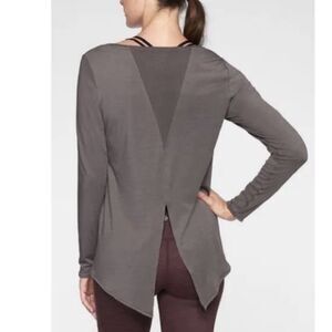 Athleta Split Back Essence Semi Fit Long Sleeve Top Gray Size Medium