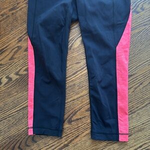 Athleta Splits Revelation Capri, heather Day-glo orange & black. Small.
