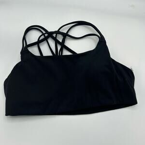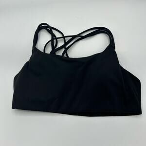 Athleta Sports Bra Medium Black Strappy Back Longline Mesh Lined Removable Pads