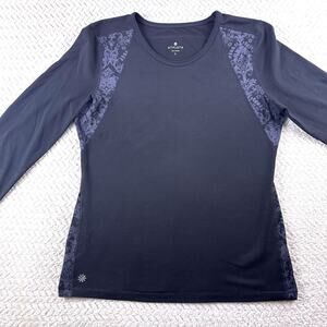 Athleta Spotlight Long Sleeve Active Top Size Large Black Gray Filigree EUC