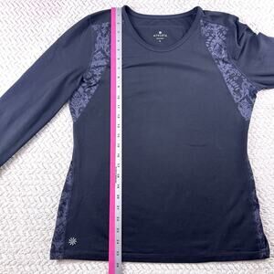 Athleta Spotlight Long Sleeve Active Top Size Large Black Gray Filigree