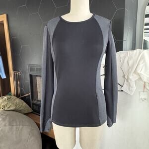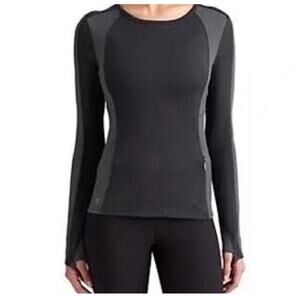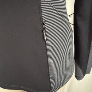 Athleta Spotlight Long Sleeve Colorblock Pinstripe Active Top Size: XS Black