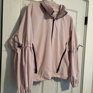 EUC only worn once. I have too many jackets! Beautiful light pinkish/purple. Light weight wind breaker material. Good, cinch waste and arms. Pet free smoke free home