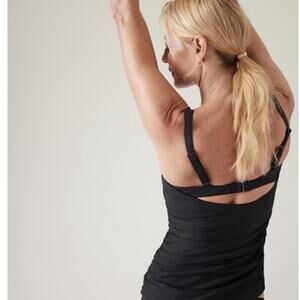 Athleta Square Neck Bra Cup Tankini Swim Top 32D/DD Black Swimwear Beach Pool