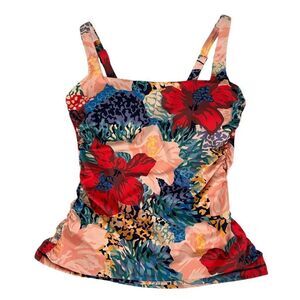 Athleta Square Neck Bra Cup Tankini Top Size 34 B/C Floral Bora Bora Multi 65774