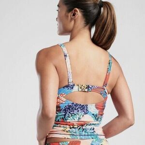Athleta Square Neck Bra Cup Tankini Top Size 34 B/C Floral Bora Bora Multi