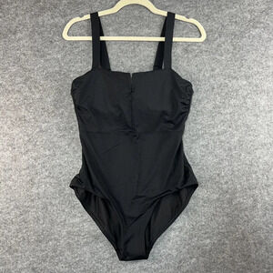 Athleta Square Neck V Cup One Piece Swimsuit Womens 36B/C Black Slimming